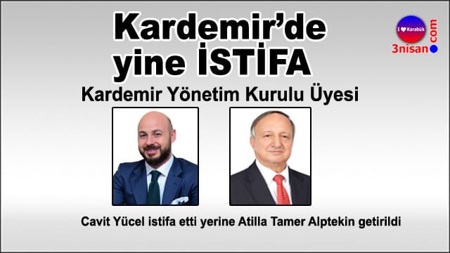 Karabük Demir Çelik Fabrikaları AŞ (KARDEMİR) tarafından aynı gün içinde (bugün) Kamu Aydınlatma Platformu’na (KAP) gönderilen  bildiride, “Sayın Cavit Yücel’in istifası ile boşan Yönetim Kurulu Üyeliği görevine Sayın Atilla Tamer Alptekin’in seçilmesine karar verilmiştir” denildi.