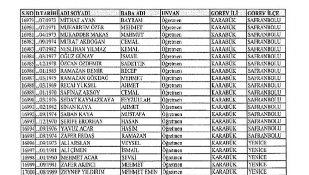 İşte 673 sayılı Kanun Hükmünde Kararname ile Karabük’te lisansı iptal edilen öğretmenlerin