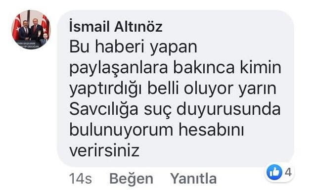 Diğer taraftan AK Parti Karabük İl Başkanı Av. İsmail Altınöz bahse konu paylaşım altına yaptığı yorumla savcılığa suç duyurusunda bulunacağını açıkladı.